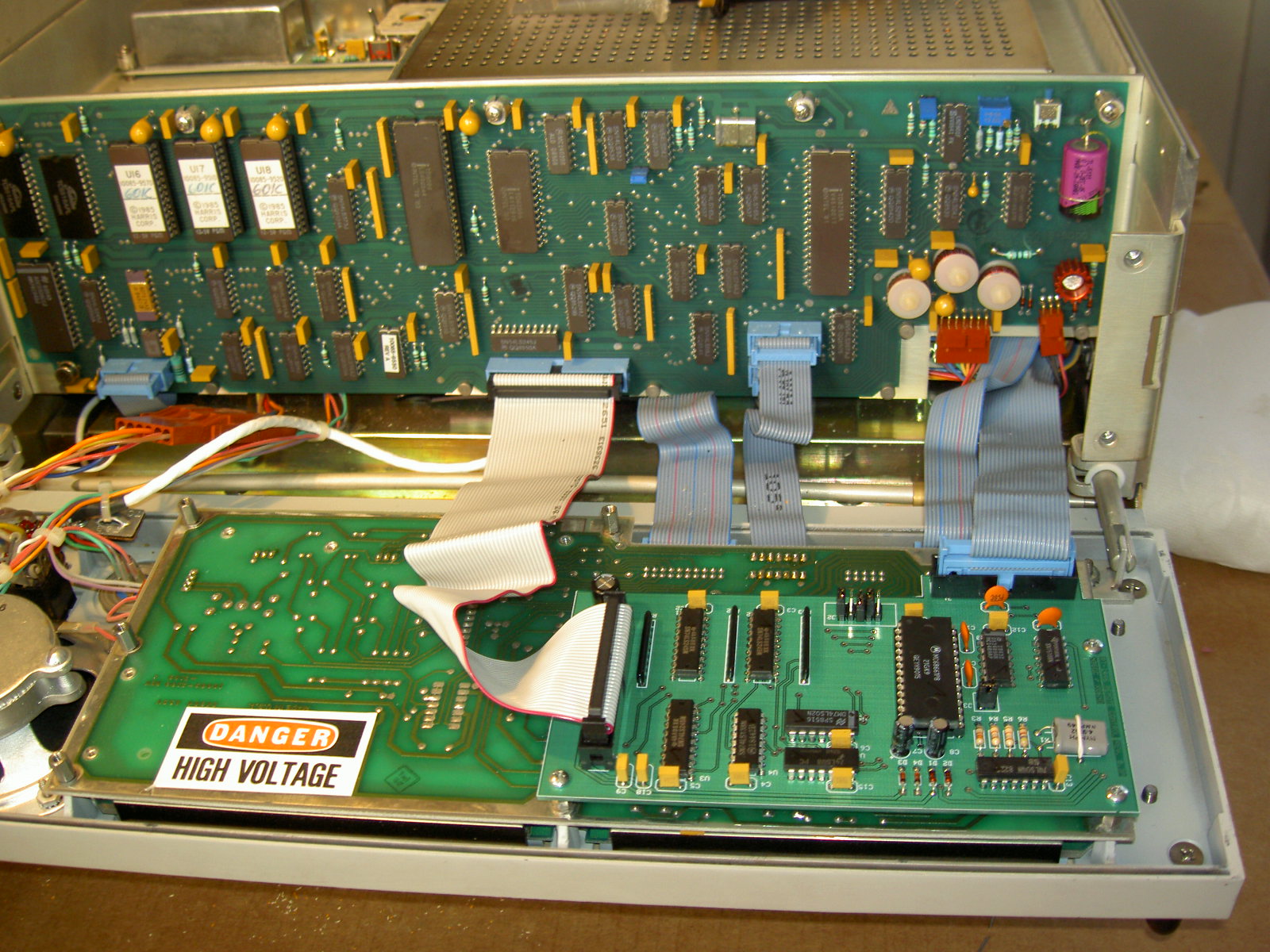 Because only one RF350 on USS Hornet had version 604M installed, we set up a facility to create and install version 604M chips. For owners of RF350 or RT-1446/URC units, we can provide EPROMS programmed with Version 604M. Because the contents of the EPROMs are copyrighted material of Harris Radio, we are offering this as a service at a price equivalent to the cost of EPROM chips and shipping. All EPROMs are clearly marked with the original copyright label of Harris Radio.